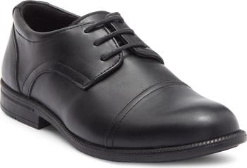 Soft faux leather with a water-repellent finish distinguishes a sophisticated derby that's a must-have for special occasions.