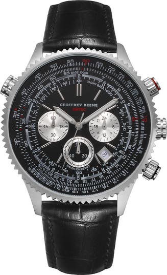 Enjoy the precise timekeeping of this leather-strap chronograph watch boasting three-hand movement, three subdials, a clear date window and tachymeter.