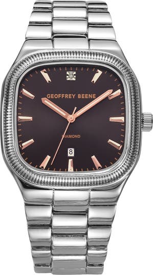 Show off polished style with this bracelet watch featuring minimal dash indexes, a clear date window and a diamond accent.