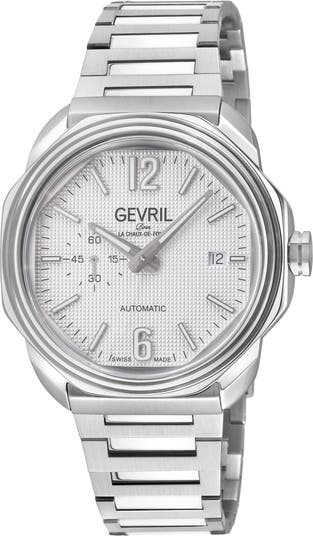 A textured, antireflective sapphire dial illuminates this Swiss-made bracelet watch built with precise three-hand quartz movement.