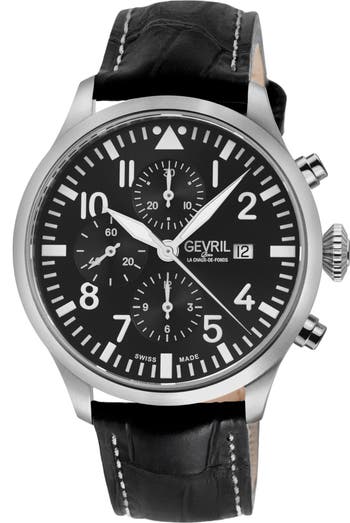 The Vaughn Collection by Gevril elevates the iconic with bold lines and distinctive design. Luminous hands and date display at the 3 o’clock and at the 6 o’clock stand out on the watch face, covered by anti-reflective sapphire crystal.