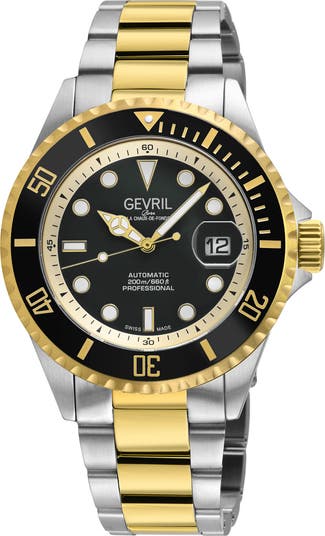 With luminous indexes and a two-toned finish, this reliable stainless steel bracelet watch is a bold timepiece to expand any collection.