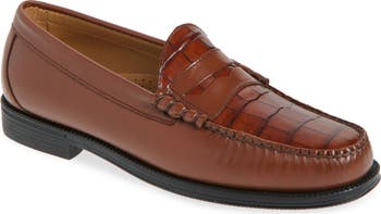 Croc-embossed leather and classy penny-slot strap add eye-catching style to a moc-toe loafer that elevates your work or weekend ensembles.