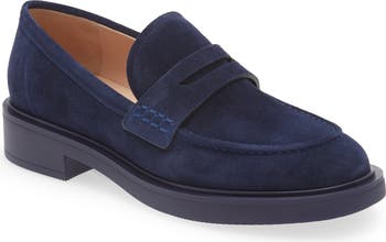 Make your style timeless with this moc-toe penny loafer crafted of Italian suede and grounded by a durable rubber sole.