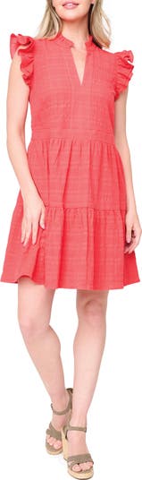Get all decked out for a day in the sun in this breezy dress framed by ruffled cap sleeves and cut from fresh cotton seersucker.