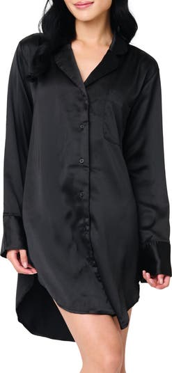 Soft and silky, this luxe satin pajama shirt elevates your bedtime routine.