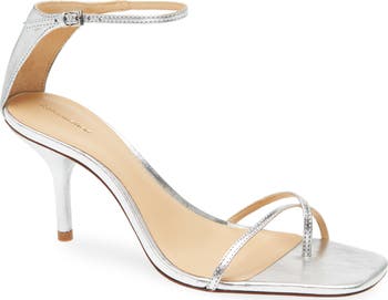 Svelt crisscrossing straps create a barely-there toe loop on a elegantly lifted sandal made of supple leather.
