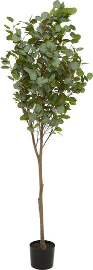 Refresh your space with this artificial eucalyptus tree housed in a contemporary planter that adds a touch of greenery to any room.