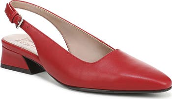 Elevate your wardrobe with this elegant slingback pump balancing a pointed toe and a modest block heel.