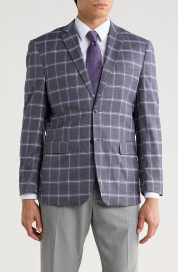 Tailored sophistication meets everyday ease in this slim-fit windowpane blazer finished with a two-button closure and convenient pockets.