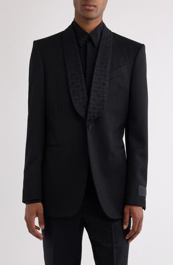 Create an unforgettable evening in this striking jacket, tailored to perfection in a slim cut from luxurious wool. The opulent shawl lapels are adorned with the Parisian label's iconic 1972 archival monogram, adding a touch of sophisticated heritage.