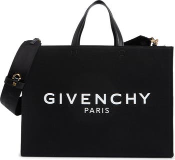 Evoke polished style with this logo-printed canvas tote bag fashioned in a structured silhouette framed by sleek faux-leather handles and a shoulder strap.