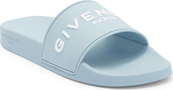 Minimalist logo lettering adds signature branding to a poolside-ready slide sandal grounded with a star-patterned tread.