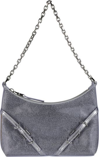 Showcasing brilliant crystals over the front, this slim-profile shoulder bag is trimmed with signature buckles, bringing chic sophistication to a compact design.