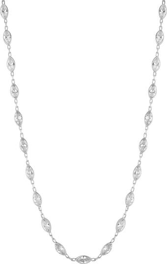 Marquise CZ stations add a vintage sparkle to this slim line choker necklace set in 14K yellow gold plating to complete a dainty look.