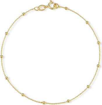 High-polished ball stations lend pretty, eye-catching texture to this delicate, layer-friendly anklet.