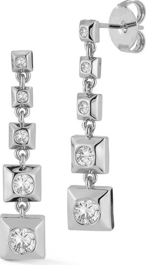 Bezel-set cubic zirconia sparkle from graduated squares on these striking linear drop earrings boasting a high-shine finish.