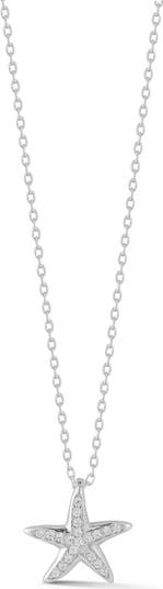 Pavé cubic zirconia enhance the beachy shine of this dainty starfish pendant necklace crafted from sterling silver and plated in fine metal.