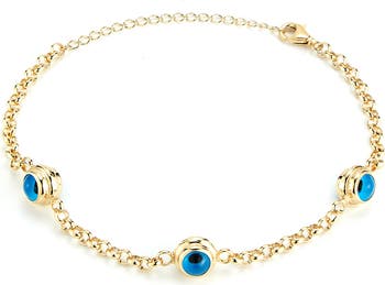 Blue stations punctuate a dainty chain bracelet set in lustrous yellow gold vermeil for trendy style.
