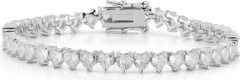 Heart-cut cubic zirconia stones bring lovely shine to this tennis bracelet in plating of your choice.