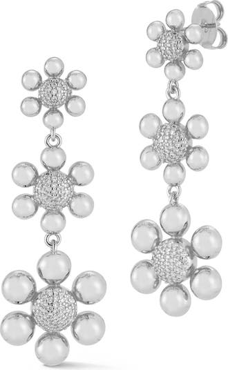Pavé cubic zirconia illuminate these polished flower linear drop earrings that bring nature-inspired shine to your looks.