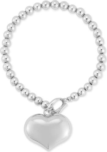A polished puffy heart charm brings lovely shine to this beaded-chain bracelet that comes in plating of your choice.
