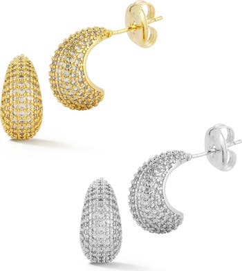 Upgrade your earring rotation with set of goldtone and silvertone hoops sparkling with shimmering cubic zirconia.