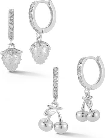 Set of 2 Strawberry & Cherry Drop Huggie Hoop Earrings