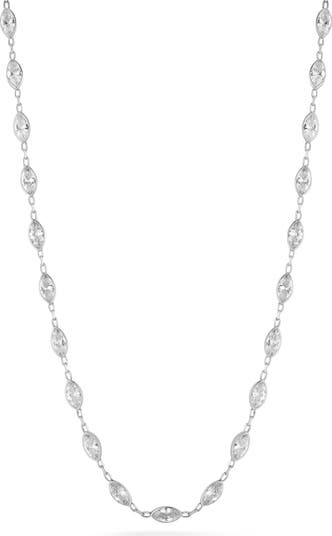 Perfect to layer or wear solo, this elegant necklace showcases marquise-cut cubic zirconia stones sparkling along a dainty station chain.