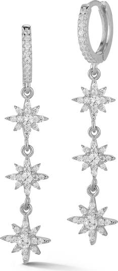 - - Sterling silver CZ celestial star drop huggie hoop earrings - Hinge back - Imported Orders cannot be shipped to Canada, Puerto Rico, APO, FPO or P.O. Boxes.