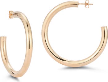 A tubular silhouette adds a little extra volume to these generously-sized hoop earrings ready to shine.