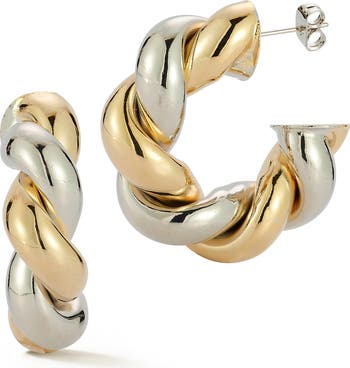 These gleaming hoop earrings feature a two-toned, twisted silhouette that bring refined texture to your look.
