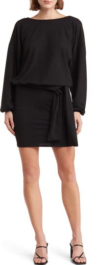A plunging V-back amps the allure of this drop-waist belted dress framed by roomy sleeves and cut from the softest jersey.