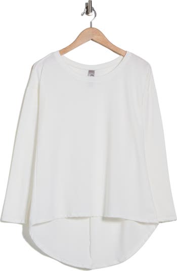 A boat neck and drop shoulders give this high-low sweater an appeal.