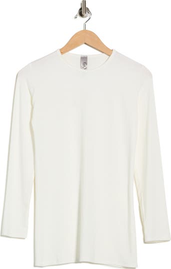 Lightweight and perfect for layering, this long-sleeve crewneck T-shirt is cut from stretchy fabric and will become a go-to staple in your collection.