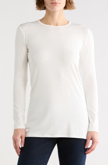 Lightweight and perfect for layering, this long-sleeve crewneck T-shirt is cut from stretchy fabric and will become a go-to staple in your collection.