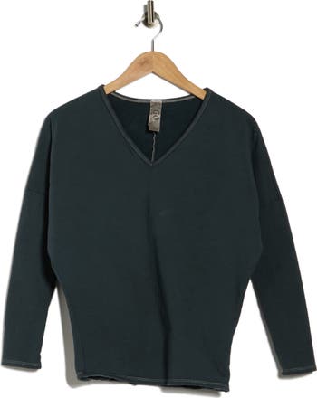 Bring romance to your cozy collection with this V-neck dolman-sleeve sweater featuring a woman-and-rose graphic.