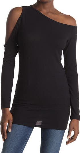 A tie dye print and cold shoulder detail add a contemporary twist to a long sleeve top.