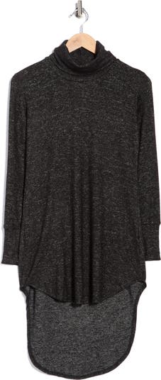 Sweater weather has never felt better than in this cozy knit tunic framed by a turtleneck and a dramatic high-low hem.