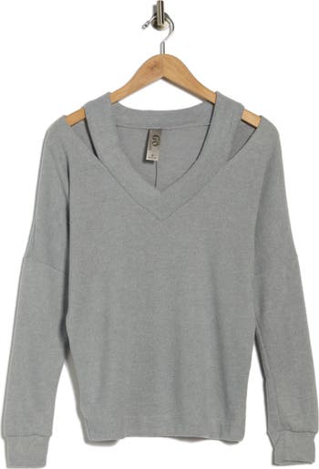 Show a peek of skin in this cozy sweater framed by a V-neckline and dolman sleeves.