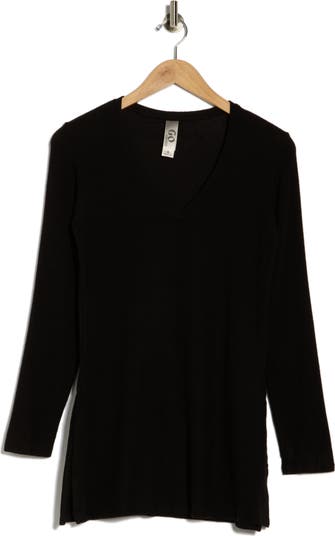 Sweater weather has never felt better than when you slip on this cozy V-neck tunic with side-slit seams.