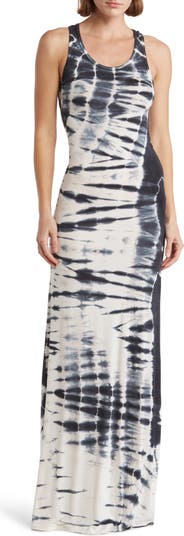 A scoop-neck maxi dress patterned in washed tie dye exudes laid-back vibes suitable for casual outings.