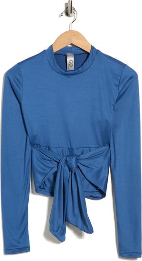 A soft-tie front knot outlines the waist of a long-sleeve top cut from a supersoft woven fabric.