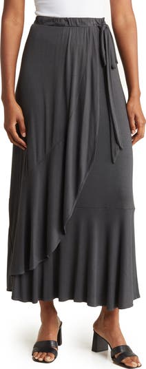 A wrap front adds a fun touch to this midi length, stretch modal skirt.
