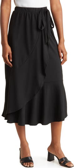 This easy to wear, stretch maxi length skirt features an eye-catching wrapped hem and secured waist tie making it a summery staple in your warm-weather wardrobe.
