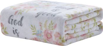 A lovely faith-based gift or warm addition to your home, this supersoft plush throw blanket features a charming floral and 'God is good' script print.