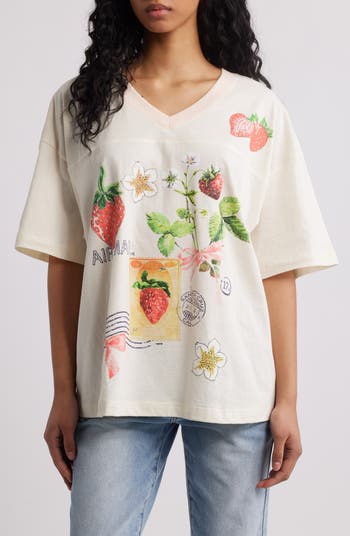 Strawberry Collage V-Neck Cotton Graphic T-Shirt