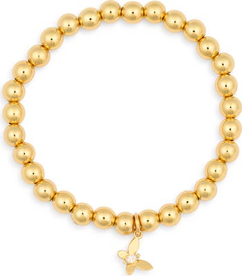 A crystal-centered butterfly sweetens a beaded stretch bracelet that brings a golden glint to your stack.