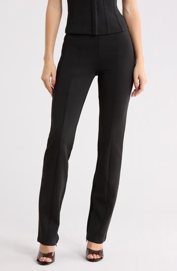 Stretchy scuba-knit fabric provides all-day comfort and flexibility whether you're hitting up the boardroom or the taproom in these straight-leg pants featuring a convenient pull-on design.