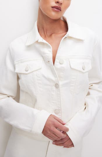 The perennial cool of a classic trucker jacket gets an upgrade thanks to crisp white-wash denim made with a touch of comfortable stretch.
